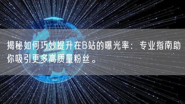 随着互联网的发展,社交媒体成为获取信息的重要途径之一。而B站作为年轻人聚集的平台,拥有庞大的用户群体和流量优势。因此,提升在B站的曝光率对于个人或品牌的发展至关重要。本文将为你揭示如何巧妙提升在B站的曝光率,助你吸引更多高质量粉丝。